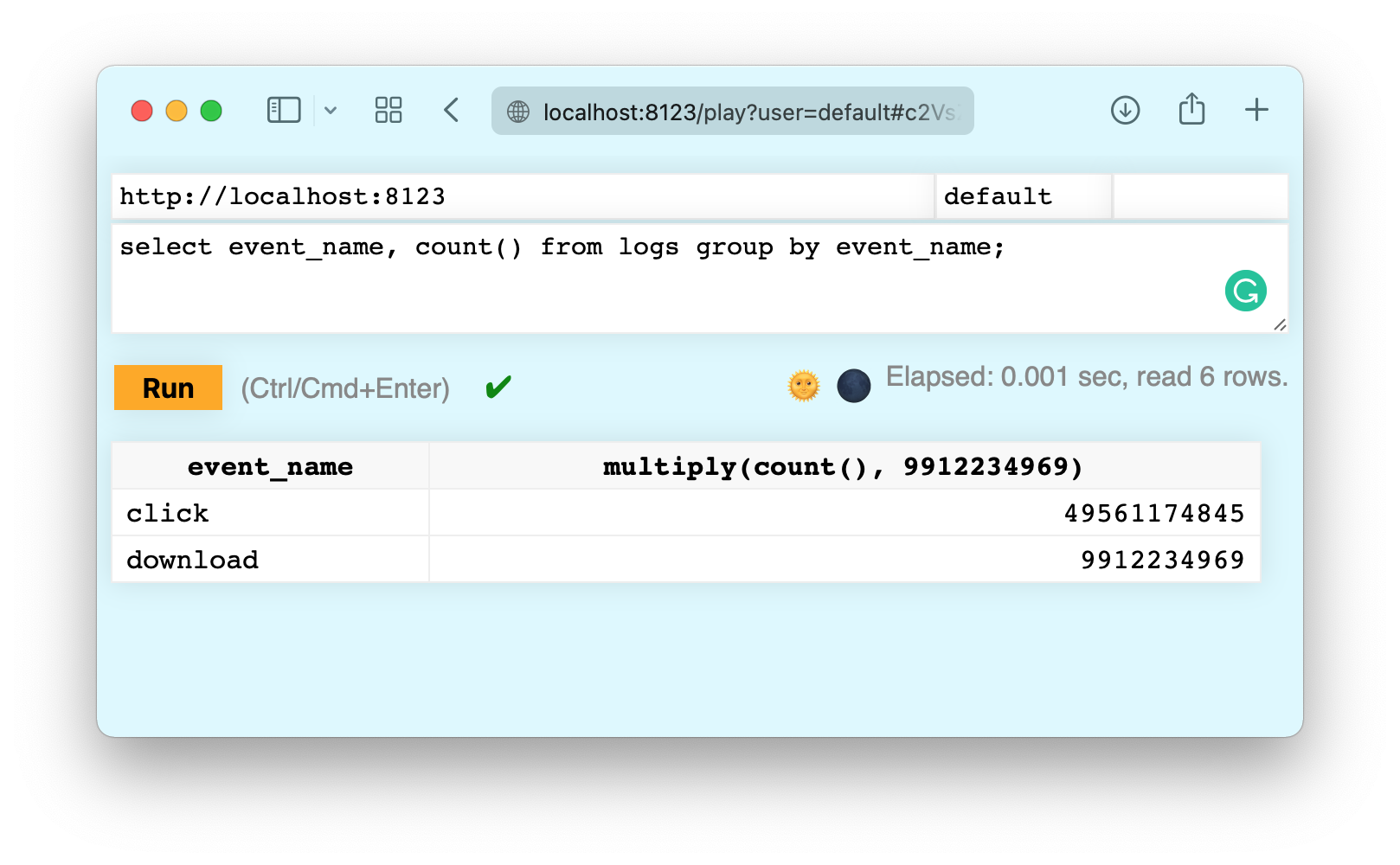 The HTTP interface on the port 8123 by default lets you use ClickHouse on any platform from any programming language.