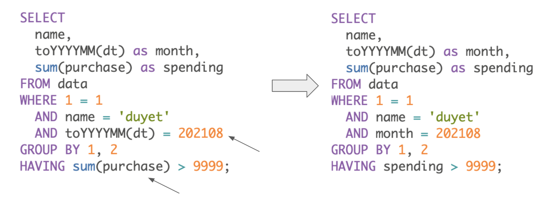 • Low-level optimizations: What really makes ClickHouse stand out is attention to low-level details. e.g. vectorized query execution